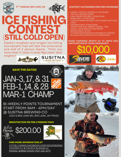 We’ll be featuring Big Lake’s Still Cold Open ice fishing tournament, which has become a traditional highlight of the new year in the Mat-Su Valley, in our January issue. But here’s your chance to sign up for a unique event that begins on January 3 and continues every other Saturday until a Sunday, March 1 grand finale.
